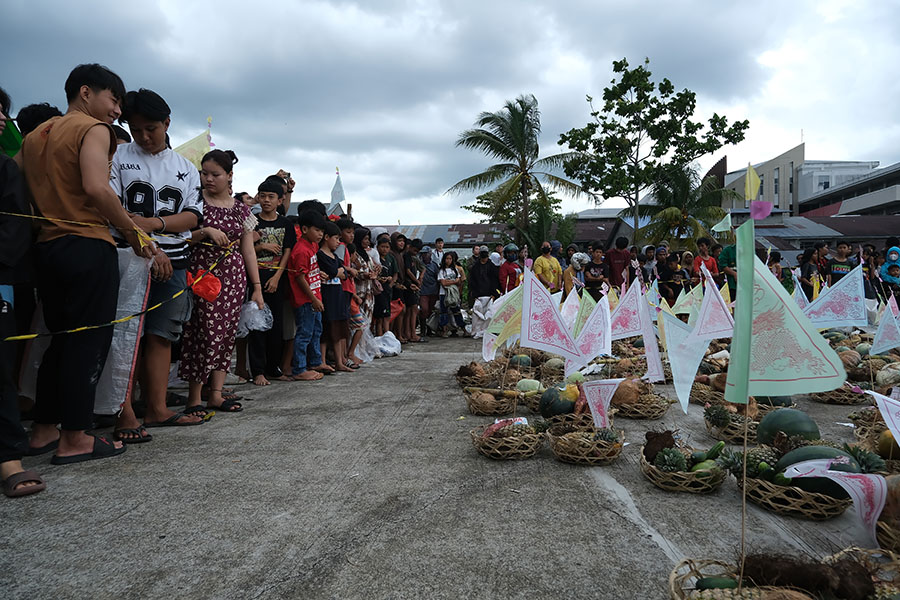 Sejumlah Penduduk mengelilingi hamparan sesaji berupa sayur dan buah Demi didoakan dalam Sembahyang Chio Sik Kow di Pemakaman Yayasan Bhakti Bersih, Sungai Raya, Kabupaten Kubu Raya, Kalimantan Barat, Sabtu (6/9/2025). Tradisi Sembahyang Chio Sik Kow yang digelar sebelum pembakaran kapal Wangkang atau kapal arwah leluhur bertujuan memberikan persembahan makanan kepada arwah tanpa keluarga atau arwah telantar agar mendapat ketenangan. ANTARA/Jessica Wuysang/gus