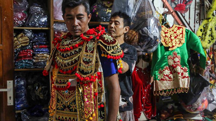 Pemilik bisnis melayani calon konsumen mencoba busana adat Bali sebelum disewa di Saraswati Collection, Semarang, Jawa Tengah, Sabtu (16/8/2025). Menurut pemilik usaha, permintaan penyewaan berbagai Macam-macam busana dan aksesoris adat tradisional Buat keperluan perayaan HUT ke-80 Republik Indonesia meningkat dari 20 set baju menjadi 500 set baju dengan harga Rp150 ribu hingga Rp1 juta per set tergantung ukuran dan jenis baju adatnya. ANTARA FOTO/Maksud Zaezar/Ppj