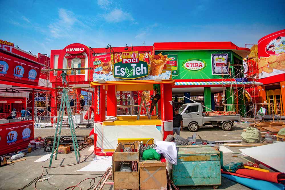 Aktivitas para pekerja membangun stand dan booth peserta pameran di arena Jakarta Fair Kemayoran (JFK) 2025 di JIExpo, Kemayoran, Jakarta, Selasa (17/06/2025). Jakarta Fair 2025 yang akan digelar 19 Juni hingga 13 Juli 2025 di JIExpo Kemayoran, Jakarta Pusat dan merupakan pameran terbesar, terlama dan terlengkap di Asia Tenggara itu dalam rangka merayakan HUT ke-498 Jakarta. MI/Usman Iskandar