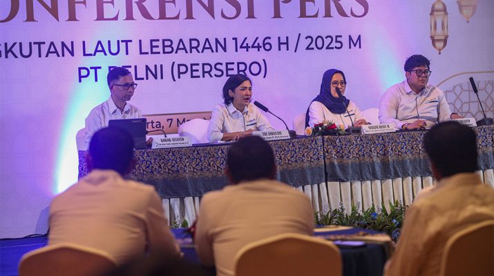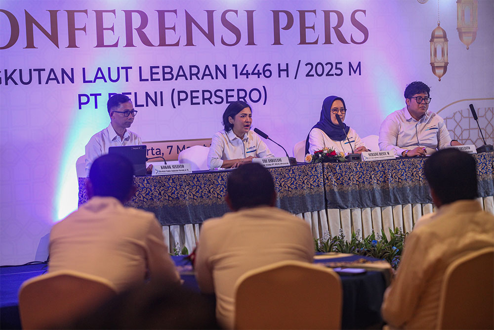 Direktur Primer Pelni, Tri Andayani (kedua kiri), Direktur Usaha Angkutan Penumpang Pelni, Nuraini Dessy (kedua kanan), Direktur Usaha Angkutan Barang dan Tol Laut Pelni Kokok Susanto (kiri) dan Sekretaris Perusahaan, Evan Eriyanto memberikan keterangan pers terkait persiapan angutan laut lebaran Pelni di Jakarta, Jumat (07/3/2025). PT Pelayaran Nasional Indonesia (Persero) atau Pelni menyiapkan 781.723 tiket Demi memenuhi kebutuhan mudik Lebaran 2025. Pelni akan mengoperasikan 55 kapal dengan total kapasitas 60.212 kursi. Jumlah ini terdiri dari 25 kapal penumpang dengan kapasitas 48.323 kursi dan 30 kapal perintis dengan kapasitas 11.889 kursi. Sementara itu Pelni juga menerima penugasan pemerintah Demi melayani mudik gratis dengan total 13.100 tiket Demi berbagai rute. MI/Usman Iskandar