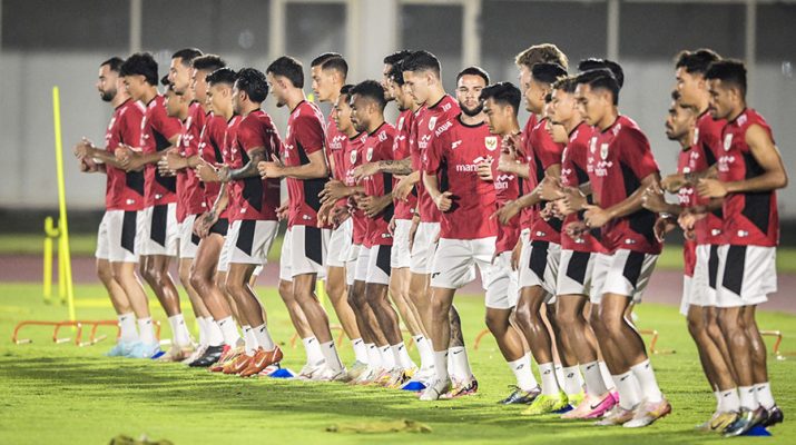 Sejumlah pesepak bola Timnas Indonesia melakukan pemanasan Ketika sesi latihan jelang melawan Timnas China di Stadion Madya, Komplek GBK, Senayan, Jakarta, Senin (2/6/2025). Latihan tersebut sebagai persiapan jelang melawan Timnas Tingkok dalam laga kualifikasi Piala Dunia FIFA 2026 Area Asia Grup C di Stadion Istimewa Gelora Bung Karno, Jakarta pada Kamis (5/6). ANTARA/Bayu Pratama S/gusĀ