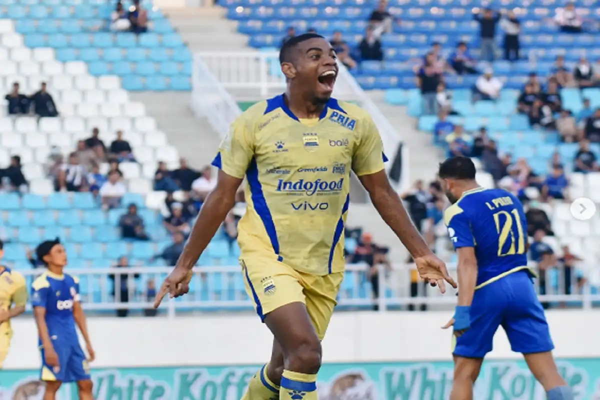 Liputanindo.id – Penyerang Persib Bandung, Uilliam Baros, melakukan selebrasi seusai menjebol gawang Arema FC di Stadion Kanjuruhan, Senin (22/9/2025). Persib menang dalam laga melawan Arema dengan skor 2-1. (Instagram/persib)