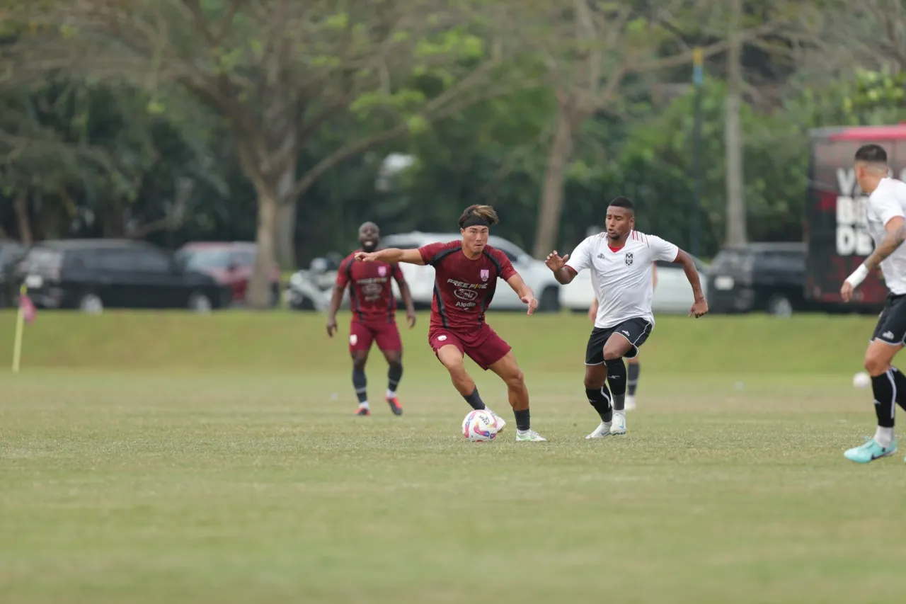 Liputanindo.id – Striker Persis Solo, Kodai Tanaka Ketika melakoni laga uji coba melawan Malut United di Jogja, Rabu (23/7/2025) malam.