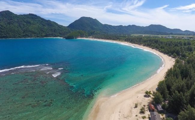 Deretan pohon pinus yang begitu rimbun Membangun suasana Asri tempat wisata ini. Deretan pegunungan yang menghijau menjadi latar belakang pemandangan alam yang dapat memukau dan memanjakan mata. Sobat Pariwisata Bukan hanya menikmati keindahan alam Tetapi juga Pandai menyalurkan hobi berselancar di pantai ini lhoo!