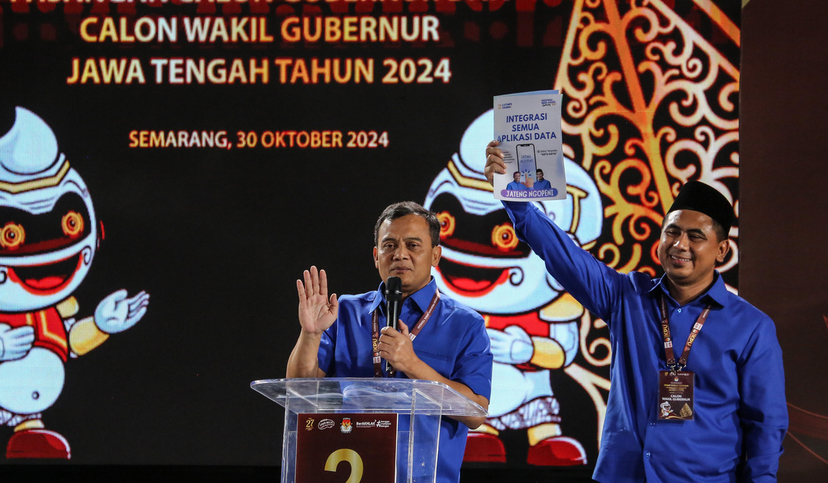 SURVEI Populi Center mencatat elektabilitas calon gubernur (cagub) dan calon wakil gubernur (cawagub) Jawa Tengah (Pilgub Jateng) Ahmad Luthfi dan Taj Yasin (Luthfi-Taj Yasin) unggul dari pesaingnya, Andika Perkasa dan Hendrar Prihadi (Andika-Hendrar). Tingkat keterpilihan Luthfi-Yasin kokoh di Bilangan 57,8 persen.