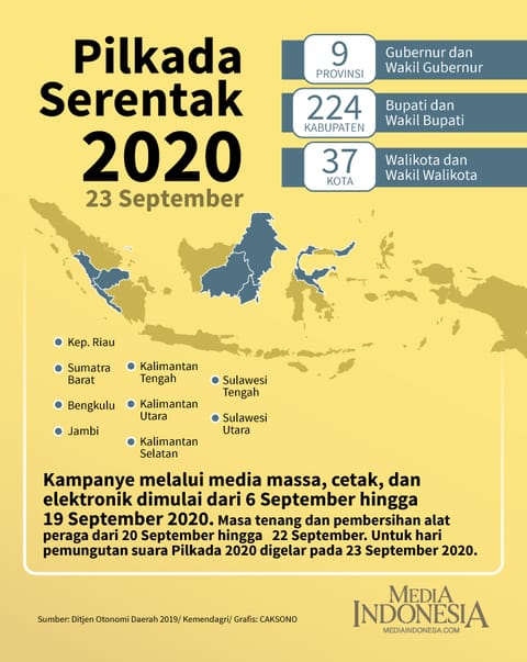 Kampanye melalui media massa, cetak, dan elektronik dimulai dari 6 September hingga 19 September 2020. Masa tenang dan pembersihan alat peraga dari 20 September hingga   22 September. Demi hari pemungutan Bunyi Pilkada 2020 digelar pada 23 September 2020.