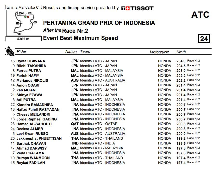 Seperti kita ketahui juga Veda Ega ini sebenarnya bicara top speed di sirkuit Mandalika, Ia bukan termasuk yang kencang banget, tercatat Formal hanya 197,8 km/jam top speed yang ditorehkan oleh anak dari pembalap Sudharmono ini di Race 2 kemarin dan lumayan jauh dari top speed terkencang Eksis di Bilangan 204,9 km/jam yang ditorehkan oleh pembalap Jepang – Ryota Ogiwara.