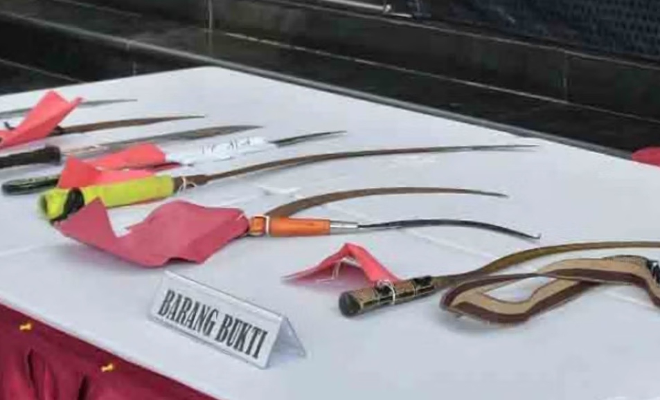 Atas perbuatannya, para pelaku dijerat Pasal 2 Ayat (1) Undang-Undang Darurat Nomor 12 Tahun 1951 tentang Senjata Tajam, dengan ancaman hukuman maksimal 10 tahun penjara.