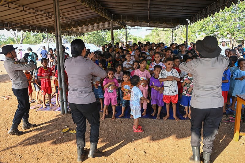 Polri Berikan Layanan Trauma Healing Pengungsi Lewotobi