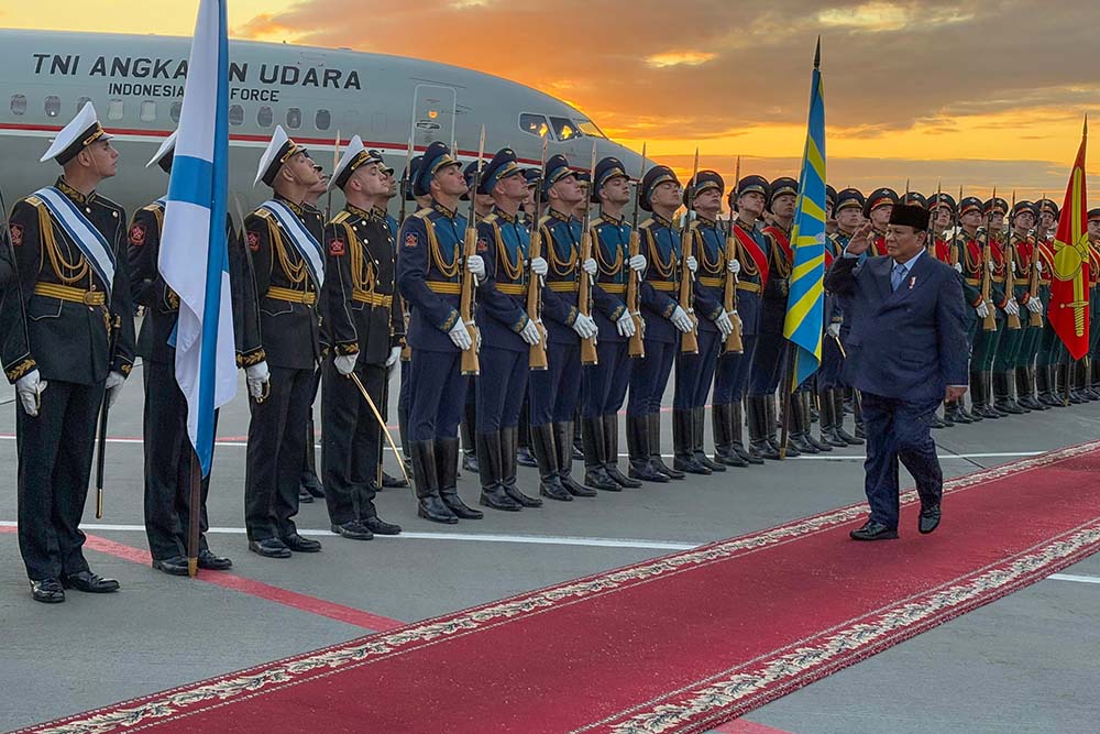 Presiden Prabowo Subianto berjalan menuju pesawat kepresidenan sebelum bertolak kembali ke Indonesia dari Bandar Udara International Pulkovo di St. Petersburg, Rusia, Jumat (20/6/2025). Presiden kembali ke Tanah Air usai merampungkan lawatannya di St. Petersburg pada 18â20 Juni 2025. ANTARA /Genta Tenri Mawangi