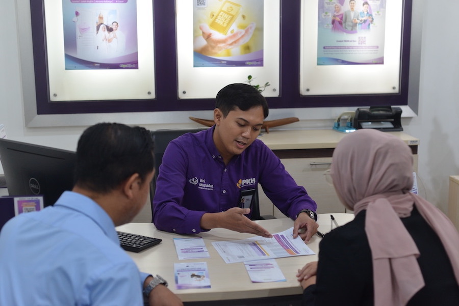 Seorang petugas Bank Muamalat melayani nasabah yang mengajukan pembiayaan Prohajj Plus di Kantor Cabang Fatmawati, Jakarta, Rabu (30/7/2025). Produk unggulan ini dirancang Buat memudahkan masyarakat merencanakan perjalanan haji dan umrah melalui Kenalan PIHK Formal dan terpercaya. Per Juni 2025, outstanding pembiayaan Prohajj Plus telah melampaui Rp166 miliar.MI/Mulia WIBOWO/sas