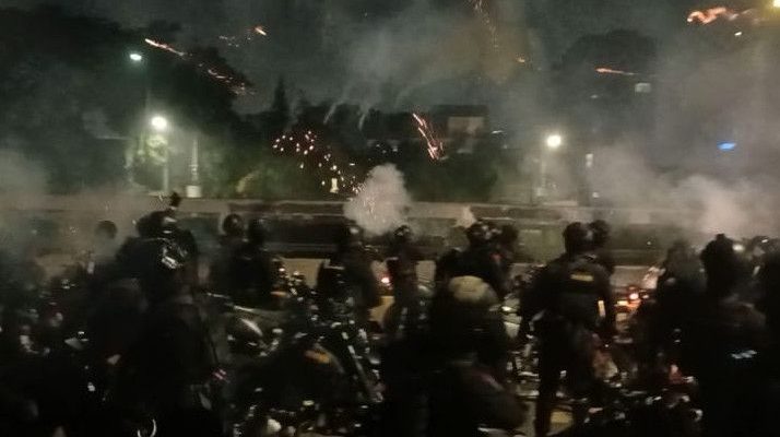 Setelah itu, komandan pasukan memberi instruksi untuk mengokang alat pelontar. Kemudian, pasukan brimob kembali menembakkan gas air mata ke arah Tol Dalam Kota.