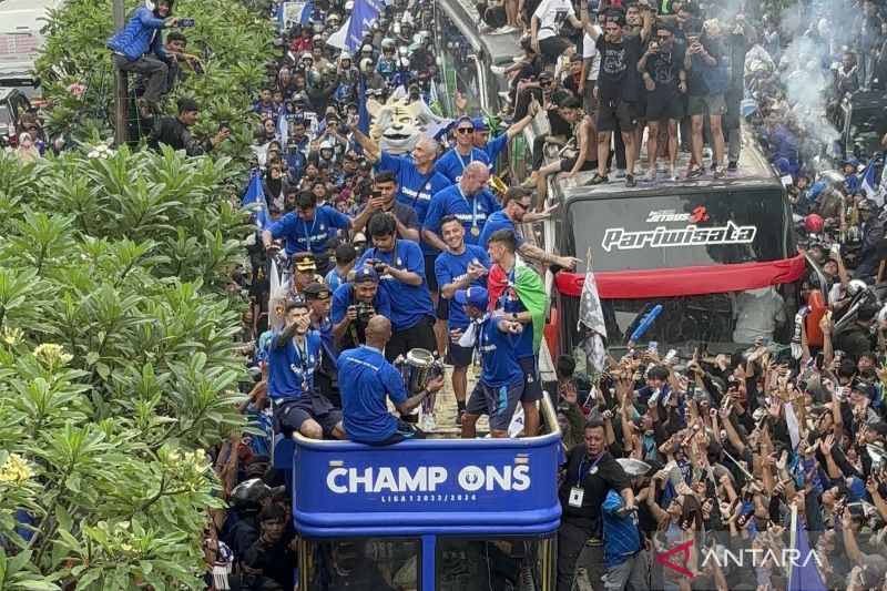 Liputanindo.id BANDUNG – Puluhan ribu Bobotoh melakukan konvoi menyambut kedatangan tim Persib Bandung yang menjuarai Aliansi 1 Indonesia 2023/2024, usai mengalahkan Madura United pada final leg kedua, di Stadion Gelora Bangkalan, Madura, Jumat (31/5/2024).