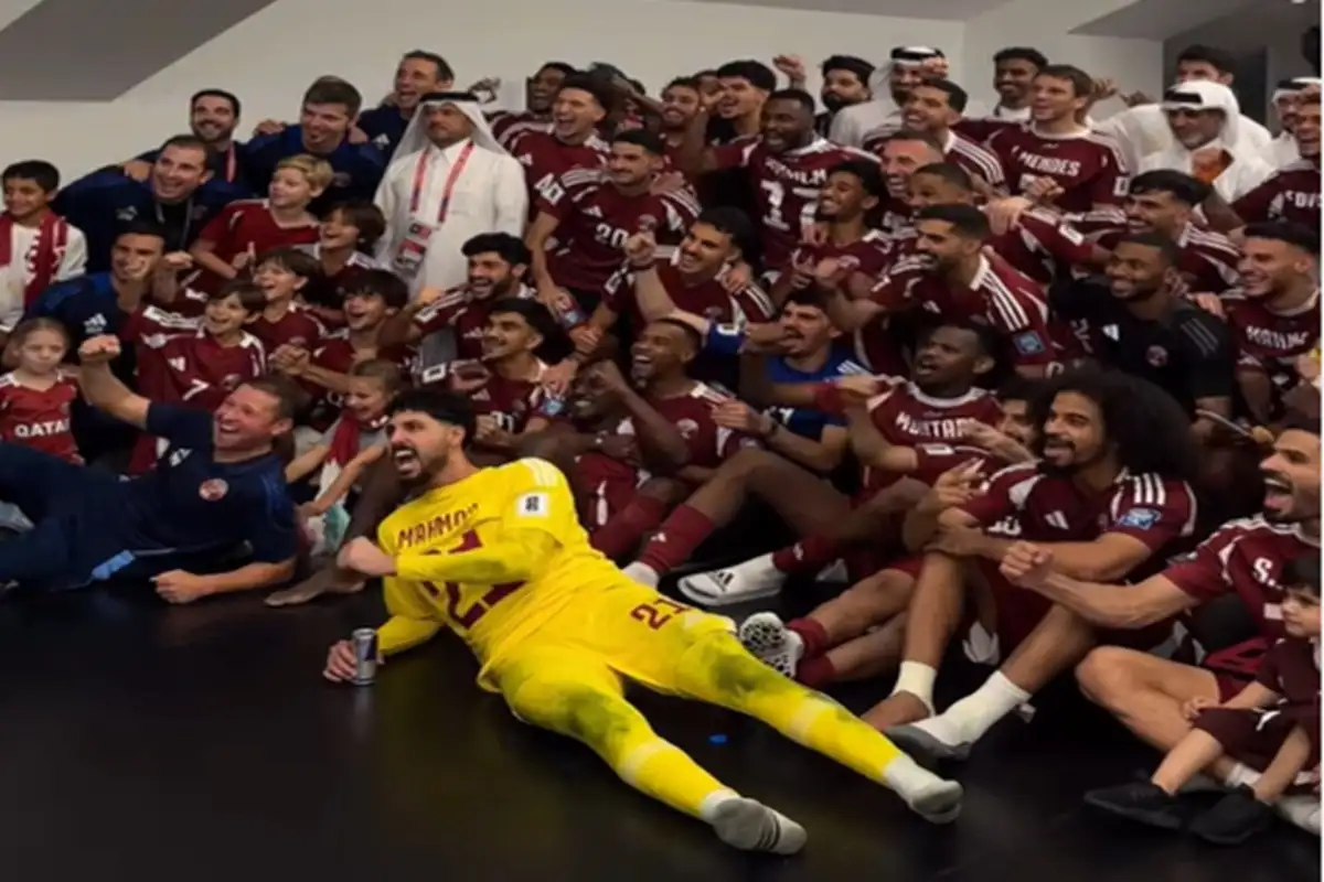 Liputanindo.id – Pemain dan ofisial timnas Qatar melakukan perayaan seusai memastikan lolos ke Piala Dunia 2026. (Instagram/qfa)