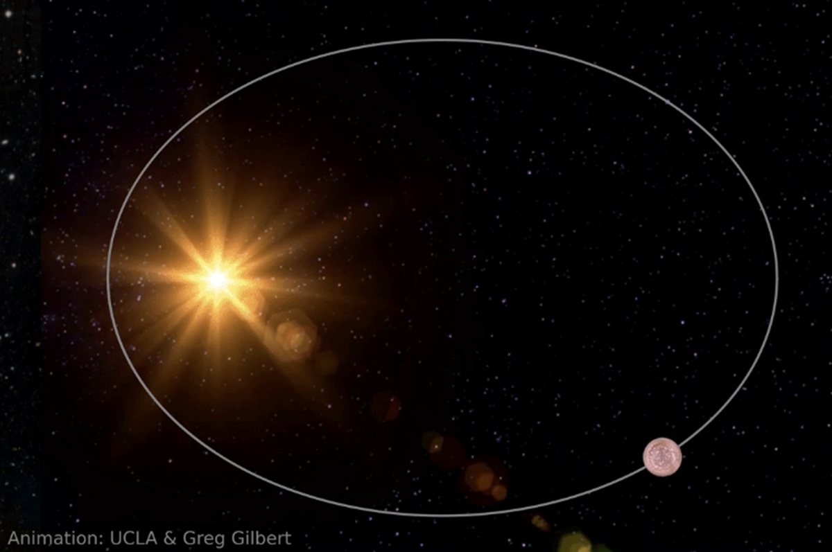 Ilustrasi menunjukkan sebuah exoplanet yang lebih besar yang mengorbit bintangnya.(UCLA/Greg Gilbert)
