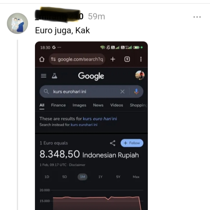 Bukan hanya itu, konversi nilai Salin dollar ke rupiah, pengecekkan konversi nilai mata Doku lain yakni Euro juga menunjukkan hal yang Dekat sama. Hal itu lantas menjadi perbincangan di sosial media salah satunya Thread
