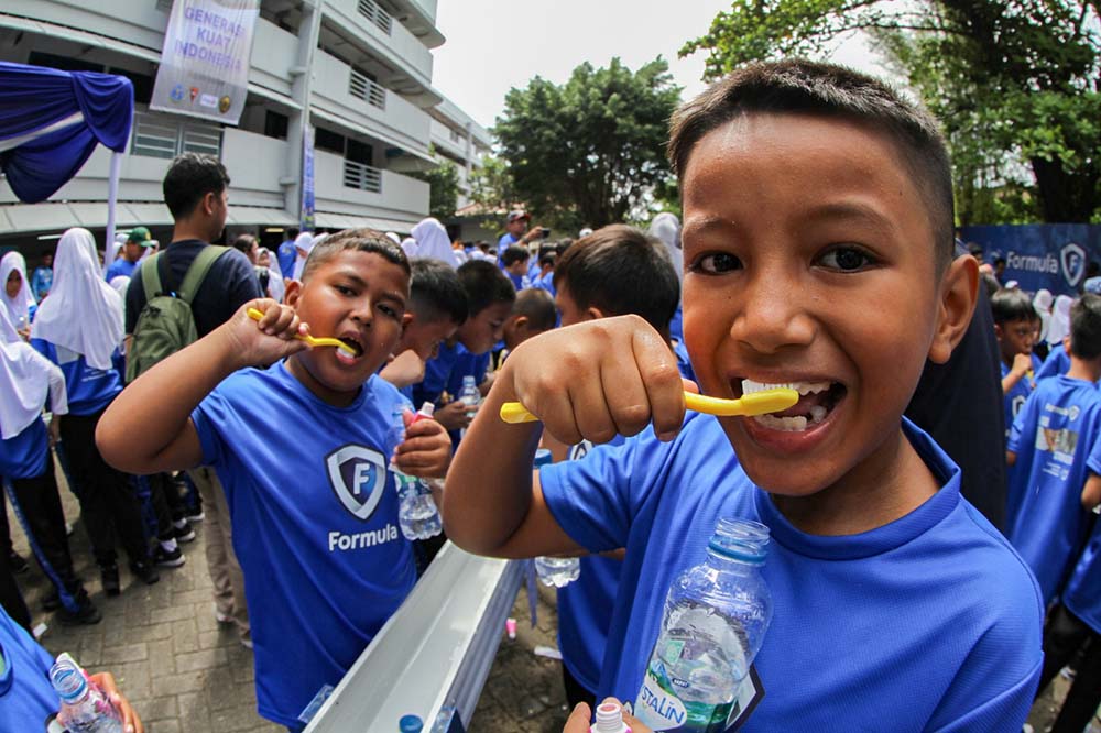 Anak-anak mengikuti edukasi menyikat gigi yang menyenangkan Serempak Formula dalam rangka memperingati HKGN 2025 di Universitas Jayabaya, Jakarta, Jumat (12/9/2025). Melalui demo interaktif dan praktik langsung menyikat gigi, anak-anak diajak memahami pentingnya menjaga kesehatan gigi sejak Awal. Kegiatan dalam rangka memperingati Hari Kesehatan Gigi dan Mulut Nasional (HKGN) 2025 yang diselenggarakan Formula, merek perawatan gigi dan mulut Serempak International College of Dentists (ICD) itu bertajuk Aksi Formula Generasi Kuat Indonesia . Kegiatan ini juga didukung oleh Yayasan Disabilitas dan pemerintah daerah setempat sebagai bagian dari komitmen Formula selama 40 tahun dalam menjaga kesehatan keluarga Indonesia lintas generasi. MI/Usman Iskandar
