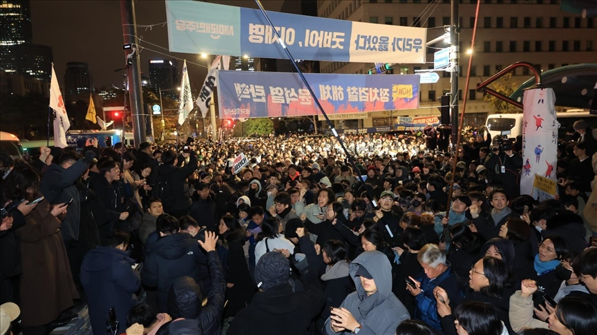 Ratusan Anggota Korsel memprotes pemberlakuan darurat militer pada Selasa malam, 3 Desember 2024. (Anadolu Agency)