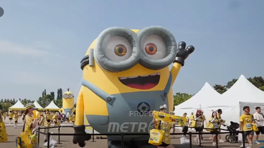 Seoul: Ratusan pelari dan penggemar Watak Minions meramaikan ajang Seoul Minions Run yang digelar di Peace Park, Seoul, Korea Selatan (Korsel). Para peserta berlari sejauh 5 kilometer Sembari mengenakan kostum ikonik Minions berwarna kuning lengkap dengan kacamata khas Watak animasi tersebut.