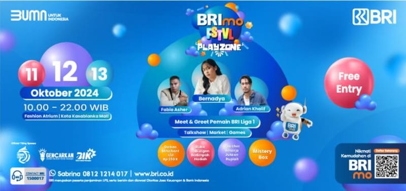 Buat kamu yang ingin tahu lebih lanjut dan merasakan keseruannya, yuk datang ke BRImo FSTVL Playzone 2024! Berlangsung di Fashion Atrium, Mall Kota Kasablanka, BRImo FSTVL Playzone 2024 akan digelar selama tiga hari berturut-turut mulai tanggal 11-13 Oktober pukul 10.00-22.00 WIB.
