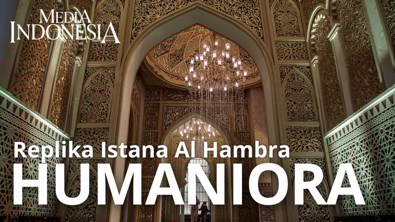 Pengunjung berfoto di instalasi bangunan Istana Alhambra di Senayan City, Jakarta, Senin (18/4/2022). Instalasi bangunan Istana Alhambra setinggi 14 meter yang merupakan tempat bersejarah bagi umat Islam di Spanyol, peninggalan kehalifahan Bani Ummayyah yang dibangun secara bertahap selama lebih dari 100 tahun sepanjang abad ke-14 dan 15 masehi itu dalam rangka memeriahkan bulan suci Ramadan bagi pengunjung pusat perbelanjaan.