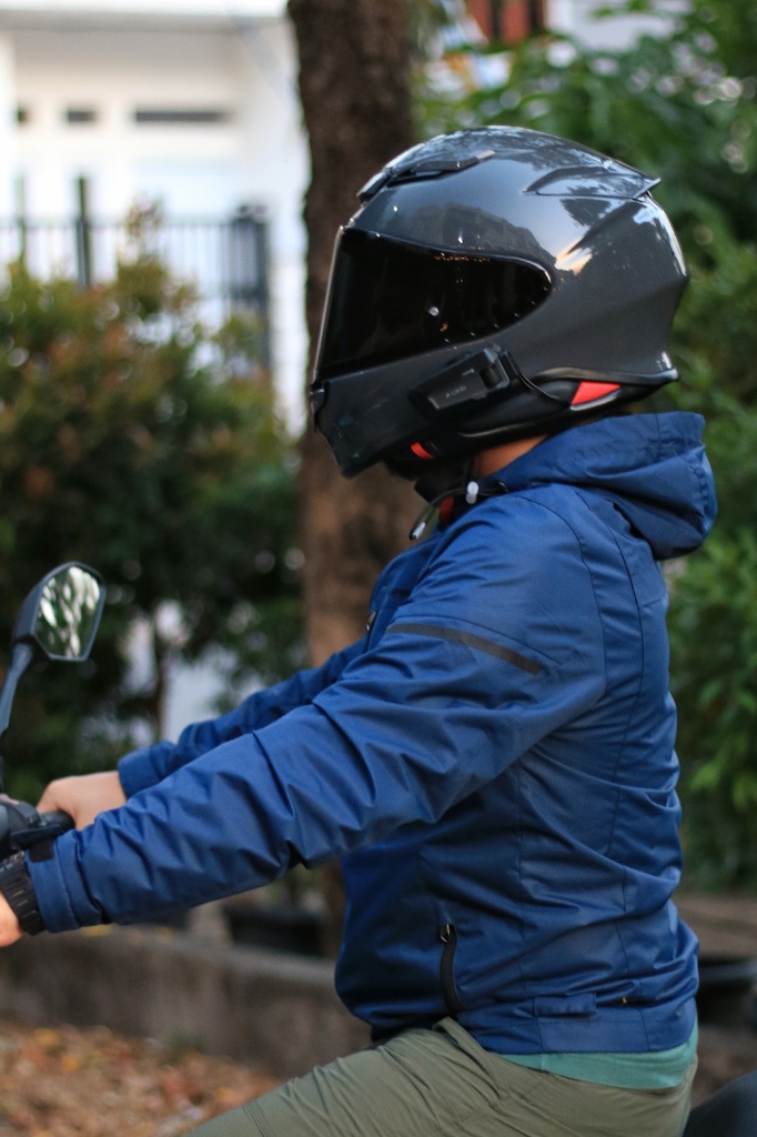 Nah, Demi sementara ini jaket baru Pandai kami review dengan pemakaian pada cuaca panas. Karena Jabodetabek Lagi dalam kondisi kemarau, bahkan malam hari pun temperatur cukup tinggi. Jaket Axton Corak ‘Ensign Blue’ kami gunakan commuter dengan jarak tempuh 50 KM (pergi-pulang), dan impresi jaket dengan protektor di bagian bahu (shoulder) dan sikut (knee) ini beneran poooolll nyamannya.
