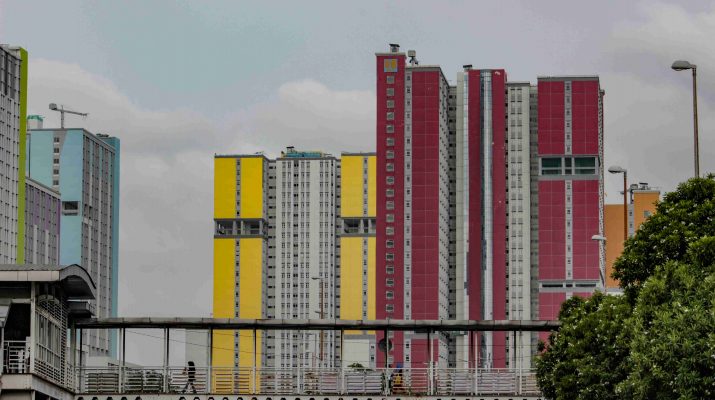 Anggota menyeberang di JPO dengan latar belakang Wisma Atlet Kemayoran di Kemayoran, Jakarta, Jumat (14/02/2025). Pemerintah Begitu tengah melakukan revitalisasi Wisma Atlet Kemayoran dan Wisma Atlet Pademangan Kepada dijadikan hunian bagi masyarakat berpenghasilan rendah (MBR) dan juga Aparatur Sipil Negara (ASN). Revitalisasi tersebut ditargetkan rampung pada April 2025 dan siap diresmikan. MI/Usman Iskandar/Ppj