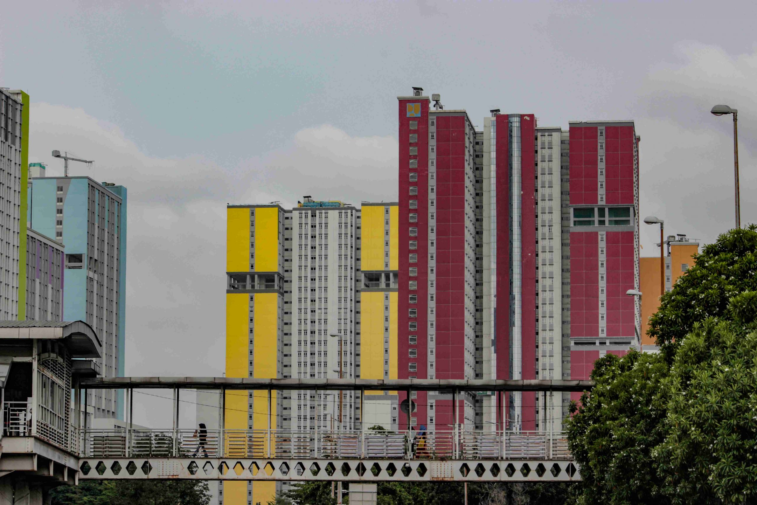 Anggota menyeberang di JPO dengan latar belakang Wisma Atlet Kemayoran di Kemayoran, Jakarta, Jumat (14/02/2025). Pemerintah Begitu tengah melakukan revitalisasi Wisma Atlet Kemayoran dan Wisma Atlet Pademangan Kepada dijadikan hunian bagi masyarakat berpenghasilan rendah (MBR) dan juga Aparatur Sipil Negara (ASN). Revitalisasi tersebut ditargetkan rampung pada April 2025 dan siap diresmikan. MI/Usman Iskandar/Ppj