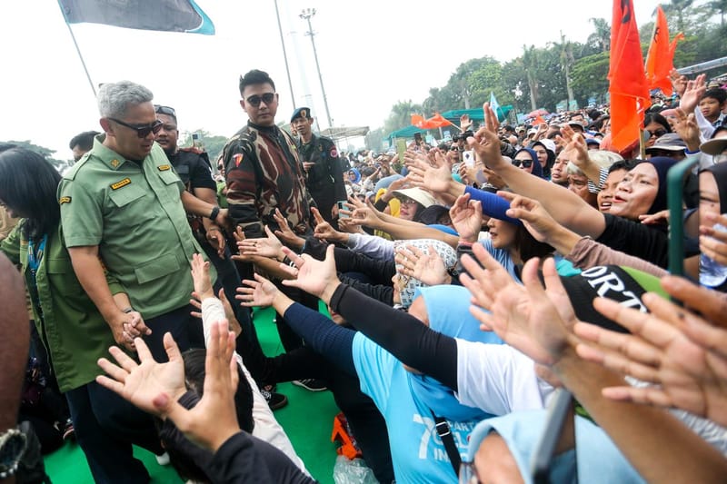 Kegiatan tersebut dihadiri ribuan Penduduk yang sudah memadati Posisi acara sejak pagi hari. Terlihat para pendukung Kekasih nomor urut 3 itu menggunakan Pakaian petugas pertahanan sipil (hansip) yang merupakan Tanda khas khas Farhan-Erwin.