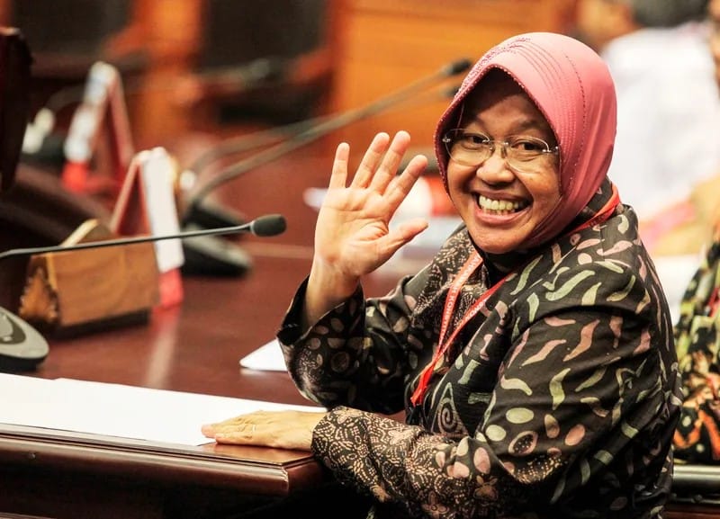 MENTERI Sosial Tri Rismaharini bungkam saat ditanya rencana mundur dari kabinet Presiden Jokowi. Ia hanya tersenyum dan melambaikan tangan ke awak media, Selasa (3/9).