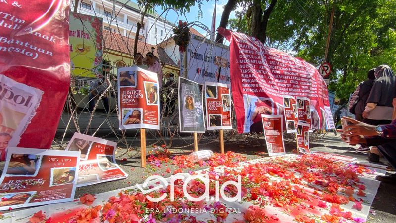 Pantuan ERA di lokasi, tampak puluhan massa membawa poster bertuliskan “Justice Fo Pagi Sera”. Mereka juga melakukan aksi tabur bunga di depan kantor PN Surabaya. Serta, menyumbangkan uang koin sebagai bentuk indikasi adanya permainan hukum di kasus ini.