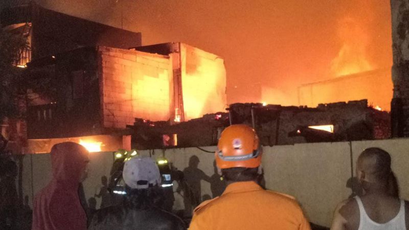 Sebanyak 22 unit mobil pemadam kebakaran dikerahkan Buat memadamkan si jago merah. Api berhasil dipadamkan sekira pukul 07.20 WIB tadi. Hasil pemeriksaan sementara, kebakaran ini diduga terjadi akibat kebocoran gas elpiji.