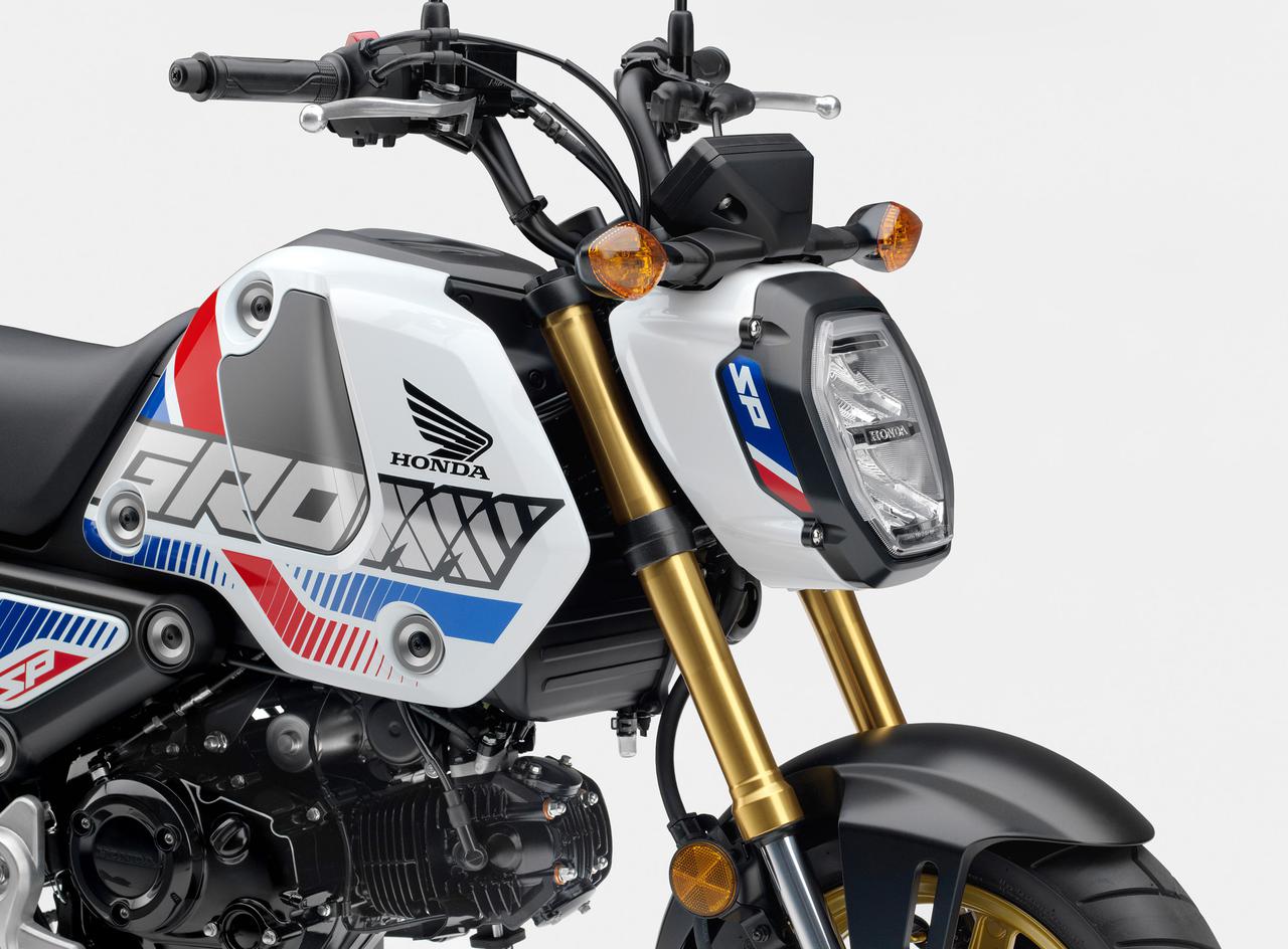 Honda Grom 125 SP ini terlihat Keren banget. Hadir dengan basis Corak pada panel Esensial body yang Pandai dilepas pasang adalah tricolor Red – White – Blue dimana basis Corak adalah Putih yang lebih terkesan jadul. Selain itu Velg emas, Suspensi depan emas dengan Pegas Suspensi belakang Kuning cukup Membangun kesan Hodna Grom 125 SP ini terlihat sporty banget.