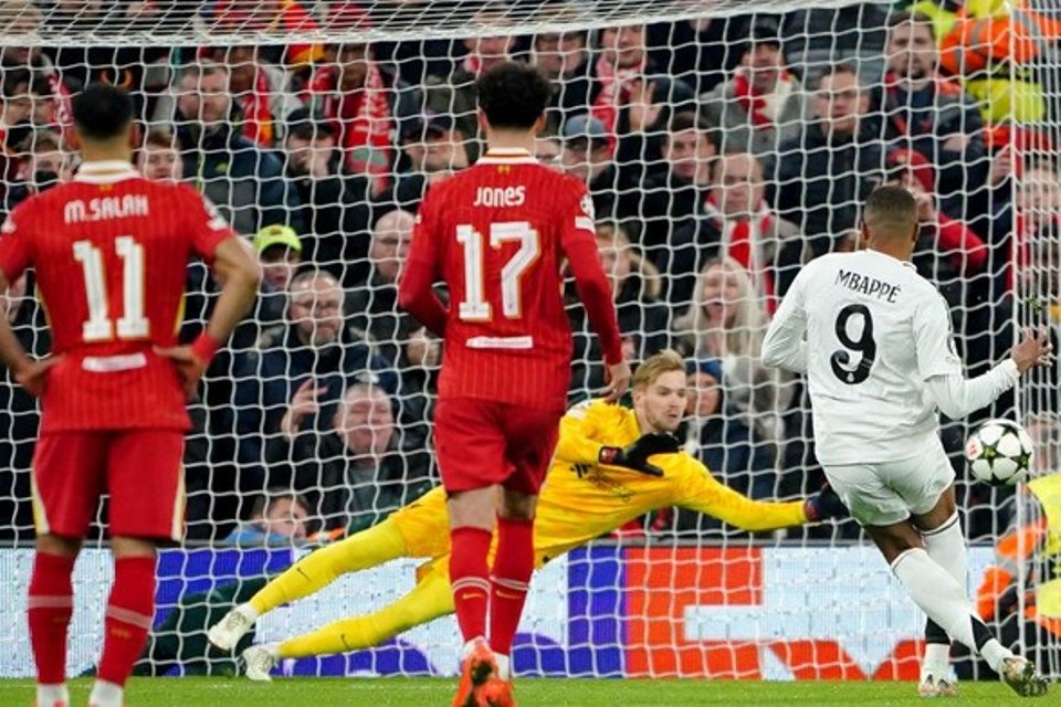 Penalti ini didapatkan Madrid usai bek Liverpool, Andrew Robertson dianggap melakukan pelanggaran. Tetapi, sepakan Mbappe yang mengarah ke kanan Pandai ditahan oleh Caoimhin Kelleher.