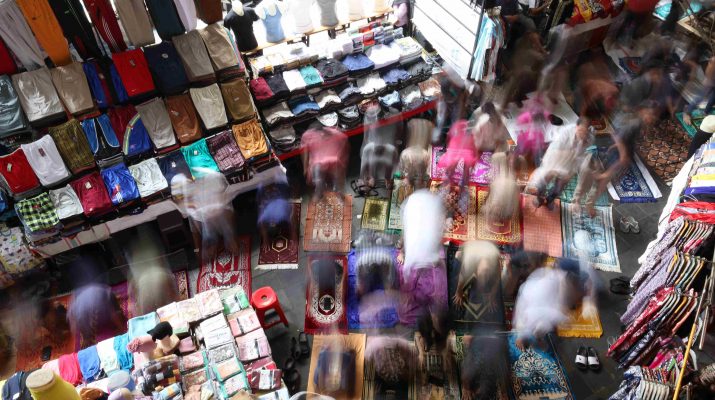 Jemaah menunaikan ibadah salat Jumat perdana pada Ramadan 1446H di selasar Pasar Tanah Abang, Jakarta, Jumat (7/3/2025). Salat Jumat tersebut diikuti oleh para pedagang dan pembeli pasar Tanah Abang. Nyaris setiap lorong di pasar Tanah Abang berubah menjadi area saf Demi Penyelenggaraan salat Jumat. Aktivitas perdagangan pun dihentikan sejenak. MI/Susanto/Ppj