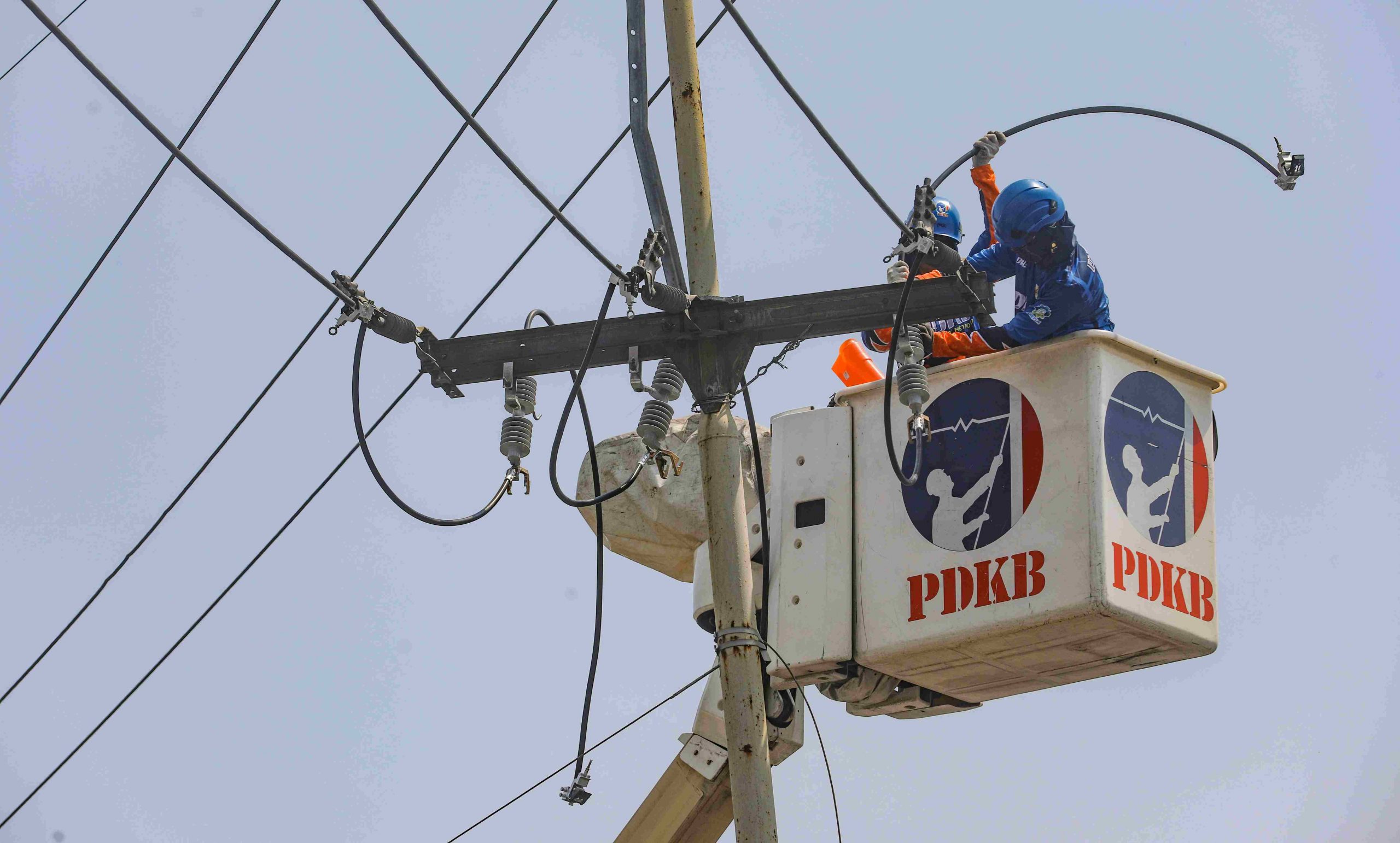 Personel tim Tertentu Pekerjaan Dalam Keadaan Bertegangan (PDKB) PT PLN (Persero) melakukan pemeliharaan pada jaringan listrik tanpa memadamkan Kategori listrik di Jakarta, Senin (18/8/2025). PLN melakukan skenario Percepatan Pengembangan Kekuatan Terbarukan (ARED) Buat mendukung pemerintah mencapai bauran Kekuatan terbarukan sebesar 75% pada tahun 2040, dengan mengembangkan infrastruktur seperti jalur transmisi hijau. MI/Usman Iskandar/Ppj