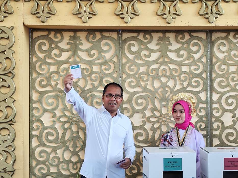 Sementara itu, calon wakil gubernur Kekasih Danny, Azhar Arsyad memberi hak suaranya di TPS 27 Griya Prima Tonasa, Kelurahan Pai, Kecamatan Biringkanaya, Makassar.