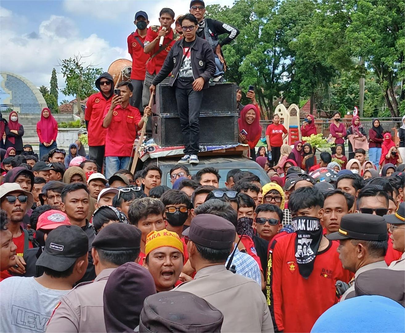 Para pekerja yang terdampak kemudian menggelar aksi protes di depan Kantor Bupati Cirebon, Selasa (11/3). Mereka menuntut kejelasan dan keadilan atas PHK yang dianggap Enggak berdasar serta meminta pemerintah daerah Demi turun tangan menyelesaikan permasalahan ini.