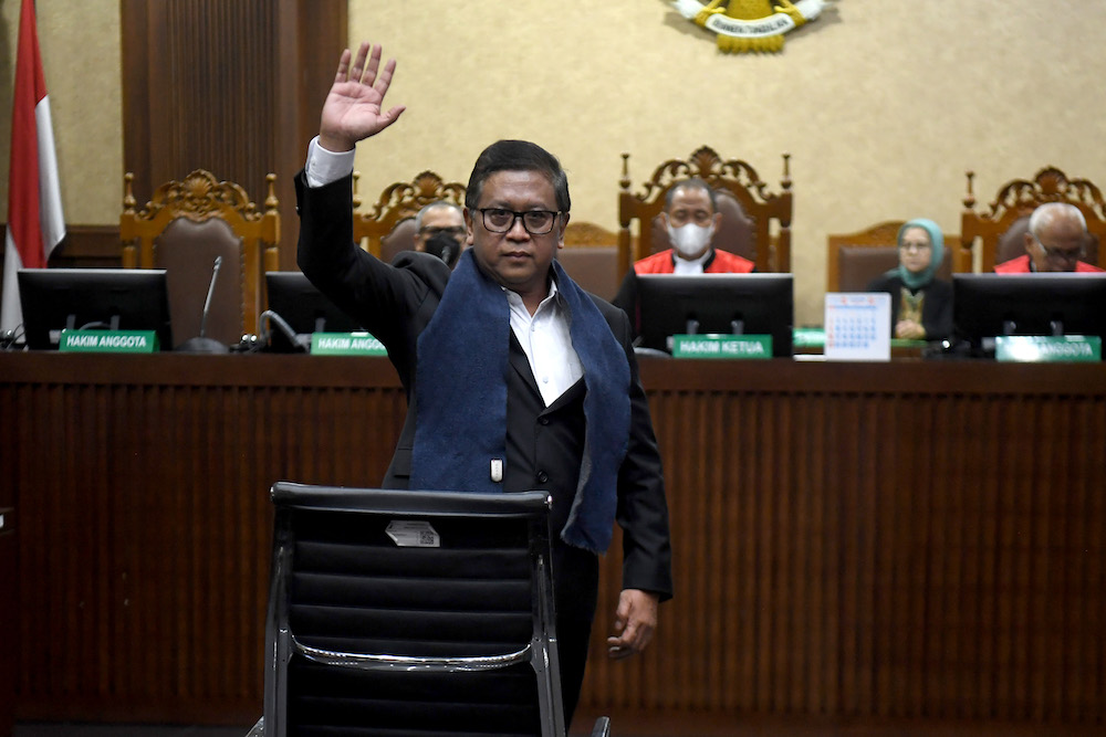 Sekjen DPP PDI Perjuangan Hasto Kristiyanto menjalani sidang dakwaan di Pengadilan Tipikor, Jakarta Pusat, Jumat (14/3/2025). Jaksa Penuntut Lumrah KPK mendakwa Hasto Kristiyanto menghalangi atau merintangi penyidikan perkara korupsi tersangka Harun Masiku pada rentang waktu 2019-2024. ANTARA FOTO/Muhammad Adimaja/sas