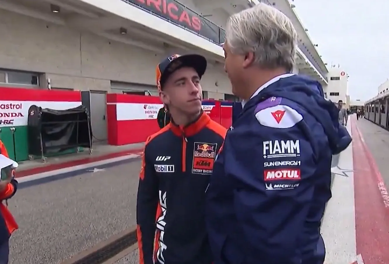 Pemilik Team asal Italia dan pebalap asal Spanyol itu Berjumpa di paddock sirkuit Austin dan berpelukan. Mereka berdua mulai berbicara, dan Campinoti bertanya, “‘Apakah semuanya Berkualitas-Berkualitas saja?” Acosta mengonfirmasikan bahwa dia Berkualitas Berkualitas saja, dan Campinoti memeluknya Tengah Kepada memberitahunya sesuatu yang Kagak Dapat ditangkap kamera Tetapi diakhiri dengan pertanyaan bernada penegasan “Kau Paham itu, bukan? ” Acosta menjawab dengan tegas “Engkau [silahkan] bicara dengan Valera.”