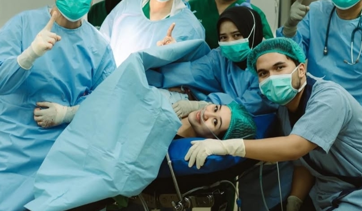 Dalam unggahan tersebut, Aaliyah yang berada di sebuah ruangan yang terlihat seperti ruang persalinan tampak tersenyum dan Thariq pun menemani sang istri tercinta.
