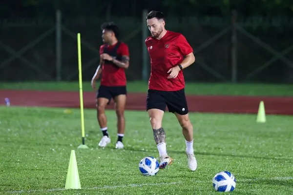 Liputanindo.id – Pemain timnas Indonesia Marc Klok menjalani latihan di Brunei Darussalam, belum Pelan ini, sebagai persiapan menghadapi Brunei dalam laga leg kedua kualifikasi babak pertama Area Asia Piala Dunia 2026. (Istimewa/pssi.org).