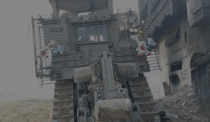 Tentara pendudukan Israel berbagi foto buldoser D9 yang dihiasi dengan mainan Punya anak-anak Palestina yang mengungsi atau terbunuh Demi mereka menimbulkan kekacauan di Gaza.(Yeni Safak)