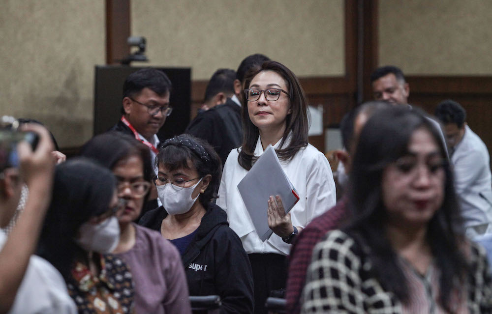 Rina Lauwy, mantan istri terdakwa eks Direktur Primer (Dirut) PT Tabungan dan Asuransi Pegawai Negeri (Taspen) Persero, Antonius N.S. Kosasih, hadir sebagai saksi dalam sidang kasus dugaan korupsi kegiatan investasi fiktif yang merugikan negara sebesar Rp 1 triliun di Pengadilan Tipikor, Jakarta, Senin (25/8/2025). Jaksa penuntut Lazim menghadirkan 21 saksi terkait terdakwa eks Dirut Taspen tersebut.