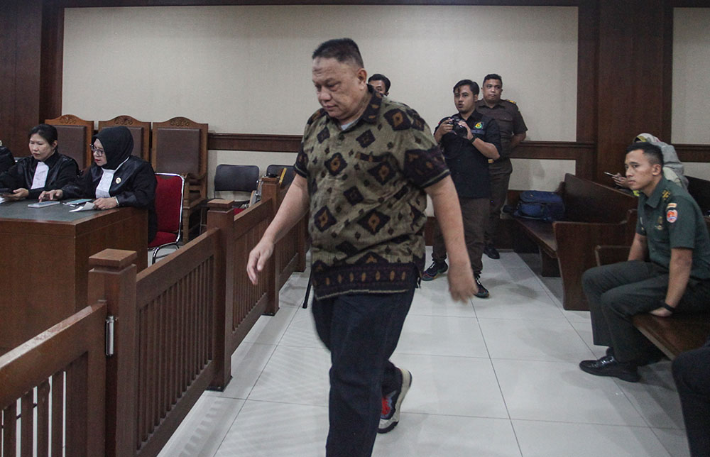 Terdakwa Pelda (Purn) Dwi Singgih Hartono bersiap menjalani sidang vonis kasus dugaan korupsi kredit BRIguna Bekang Kostrad Cibinong pada tahun 2019-2023 di Pengadilan Tipikor, Jakarta, Rabu (18/6/2025). Majelis Hakim memvonis Dwi Singgih Hartono dengan hukuman 9 tahun penjara dan denda Rp500 juta subsider empat bulan kurungan karena terbukti melakukan tindak pidana korupsi dengan memalsukan data persyaratan pengajuan permohonan pada kredit BRIguna Batalyon Bekang Kostrad Cibinong tahun 2019-2023 di Kantor BRI Unit Menteng Kecil dan Kantor BRI Cabang Tanah Abang, selain itu Dwi juga divonis enam tahun penjara denda Rp500 juta subsider empat bulan kurungan atas kasus pengajuan kredit fiktif di Kantor BRI Cabang Cut Mutiah Jakarta pada 2016-2023. MI/Usman Iskandar