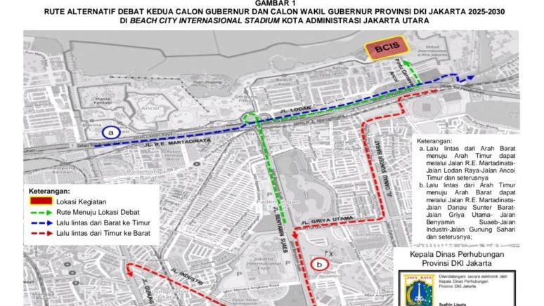Sementara itu, sejumlah ruas jalan diberlakukan rekayasa Lampau lintas demi kelancaran acara debat kedua Pilkada Jakarta 2024 besok, antara lain Lampau lintas dari Arah Barat (Pluit) menuju Arah Timur (Tanjung Priok) dapat melalui Jalan R.E. Martadinata-Jalan Lodan Raya-Jalan Ancol Timur-Jalan Ketel dan seterusnya.