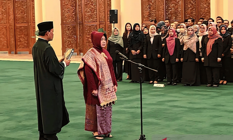 KETUA MPR RI Ahmad Muzani melantik Sekretaris Jenderal (Sekjen) MPR RI Siti Fauziah di Gedung Nusantara IV, Kompleks Parlemen, Senayan, Jakarta, Senin (9/12). Muzani mengatakan Siti Fauziah mencatatkan sejarah karena menjadi Perempuan pertama sebagai Sekjen MPR.