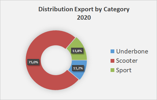 Sementara eskpor Sepeda motor dari Indonesia ke Luar Negeri tercatat Total sebanyak 165.526 Unit dan dari jumlah ini Skutik menguasai 75% jumlah unit yang di ekspor sementara Sepeda motor jenis bebek menguasai 11,2% Unit ekspor serta Jenis Sport menguasai 13,8% Pangsa ekspor dari eindonesia selama 5 bulan ini –