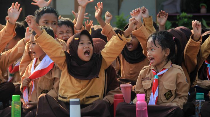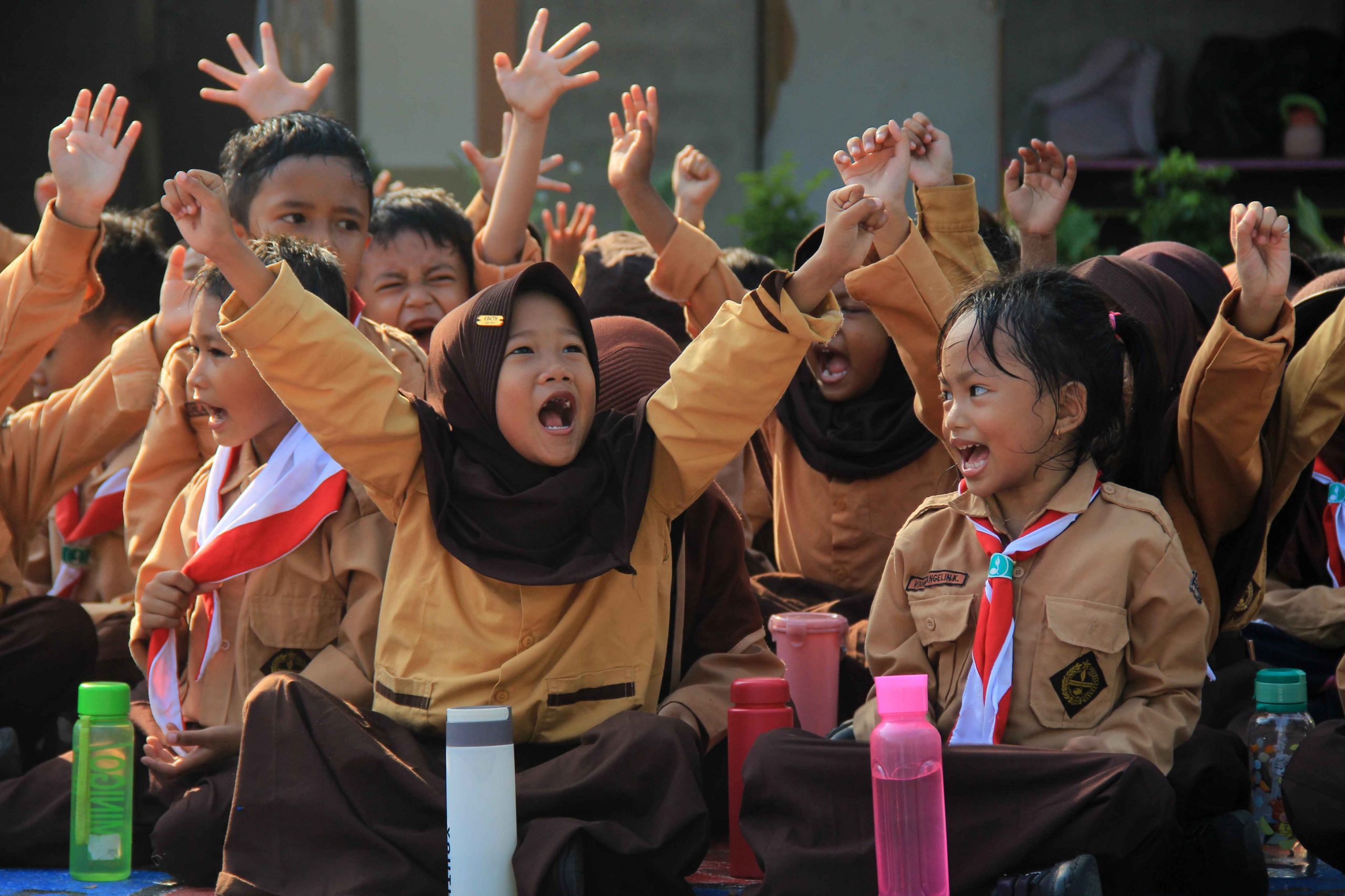 Sejumlah siswa meneriakkan yel-yel Ketika mengikuti sosialisasi anti perundungan (bullying) di SD Negeri 64, Sungai Raya Dalam, Kabupaten Kubu Raya, Kalimantan Barat, Jumat (1/8/2025). Kegiatan tersebut Demi menumbuhkan pemahaman tentang pentingnya menjaga kerukunan antarteman dan mencegah tindakan perundungan yang kerap terjadi di lingkungan sekolah. ANTARA FOTO/Jessica Wuysang/Ppj
