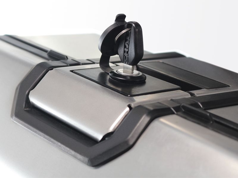 Buat top Pannier TR37 dan TR48, covernya dibuat dari satu plat utuh, tanpa sudut dan sambungan agar waterproof. Sementara sistem penguncinya berbahan stainless steel, dengan integrated double lock system. Sistem Kunci ini seperti Juga Panniernya sendiri Dirancang dan diproduksi Di barcelona – Spanyol terintegasi dalam sistem boks Pannier dan dengan sistem penguncian ganda hanya satu kunci satu tangan Buat membuka boks dan melepas dari braket/base plate. Pannier Shad terra ini Bisa ditenteng seperti koper.